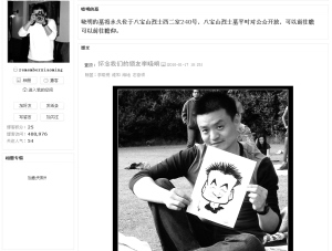 網(wǎng)友開博客紀(jì)念李曉明,圖為博客首頁截圖。?。▽O艷 制作) |