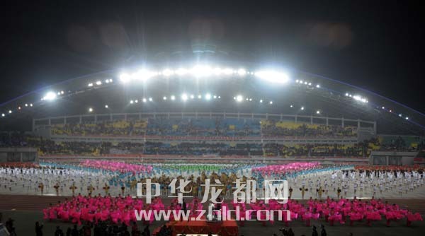 在開(kāi)幕式大型文體表演《龍騰盛世·周口頌歌》中,5000余名演員為現(xiàn)場(chǎng)觀眾奉獻(xiàn)了一場(chǎng)極具濃郁周口特色的文藝演出,集中展示了我市深厚的歷史積淀、厚重的文化底蘊(yùn)及現(xiàn)代農(nóng)業(yè)發(fā)展的壯麗篇章和科學(xué)發(fā)展、共建和諧、實(shí)現(xiàn)富民強(qiáng)市的蓬勃生機(jī),讓現(xiàn)場(chǎng)觀眾享受了一次豐盛的文化盛宴。