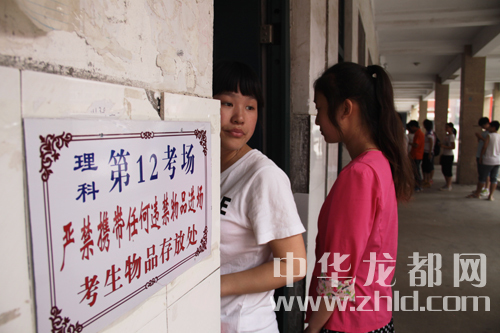 考場門前張貼著考場號及注意事項。