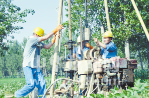 ????本報訊 (記者 張猛 文/圖) 8月3日下午,記者在西華縣田口鄉(xiāng)看到,一座座鉆機綿延數(shù)公里,工人們正頭頂烈日進行開工建設前的鉆探勘測工作(如圖),標志著鄭合高鐵周口西華段建設已進入實質(zhì)性階段。