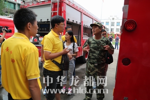 ????當(dāng)日上午10時30分,網(wǎng)友記者們一行來到了周口市公安消防支隊特勤中隊。消防官兵首先向網(wǎng)友講解了生活中的消防安全小常識和注意事項,介紹了滅火器的使用方法以及家庭消防安全知識和火場逃生技巧等。接著,組織網(wǎng)友參觀了滅火水罐車、登高平臺車、照明車、搶險救援車等執(zhí)勤車輛和搶險救援裝備器材,對于消防搶險滅火車輛,網(wǎng)友們都充滿了好奇。講解員詳細(xì)描述了每一輛消防車的功能,感興趣的網(wǎng)友還親自坐了坐消防車,過了把當(dāng)消防員的癮。隨后,講解員帶領(lǐng)大家來到車庫,網(wǎng)友們還認(rèn)識了解了水槍、戰(zhàn)斗服的不同分類及使用方法。熱心網(wǎng)友李土豆親自還試穿了戰(zhàn)斗服和搶險救援服,變身消防員拍照留念。穿著戰(zhàn)斗服的李陽激動地說:“消防戰(zhàn)士太不容易了,這身衣服加上裝備少說也有幾十斤,我們的戰(zhàn)士們不僅要穿著它們進(jìn)火場,還要靈活地完成各項救援任務(wù),消防戰(zhàn)士太偉大了!”