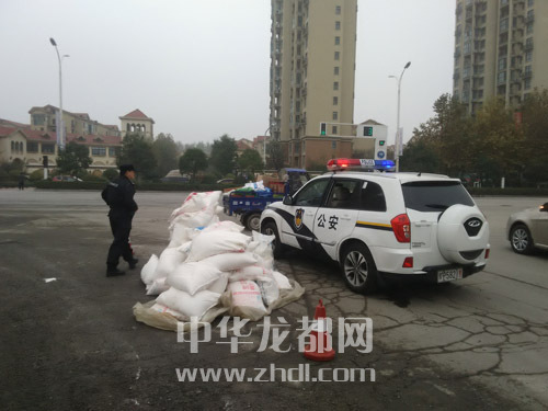 ????本報訊 11月9日上午,一輛滿載面粉的小貨車行至周口大道與興旺路交叉口時,20多袋面粉掉落在地。路過此處的市公安局特警支隊3位民警見狀,忙把警車停在掉落的面粉旁,并打開警燈和應急燈,保障掉落貨物和過往車輛的安全(如圖)。