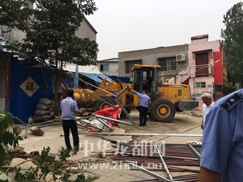 ????正當(dāng)拆除違章建筑物順利進(jìn)行之時(shí),一家飯店老板順著梯子爬上了二層的違章棚棚頂,與城管隊(duì)員“對(duì)峙”,令拆除工作一度陷入僵局。通過(guò)對(duì)其及家人細(xì)致地宣傳與講解,最終,店主既心疼又懊悔地看著自家的違章棚變成一堆廢銅爛鐵。