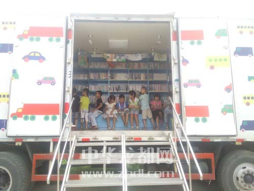 ????本報(bào)訊 8月22日,一輛帶著5000多冊(cè)兒童讀物的流動(dòng)圖書(shū)車,從北京來(lái)到鄲城縣秋渠鄉(xiāng)希望小學(xué)。該校300多名留守兒童有的上車讀書(shū),有的簽字借閱,都特別高興(如圖)。