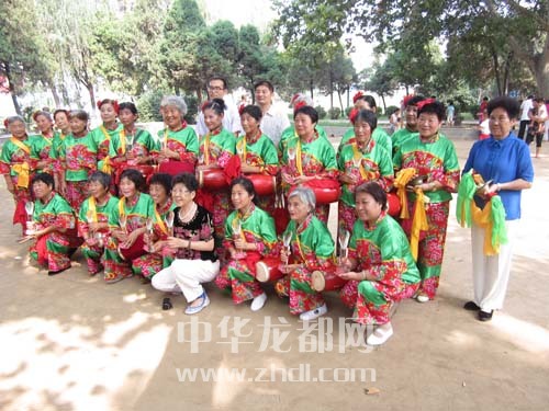 腰鼓隊(duì)成員與“粉絲”合影