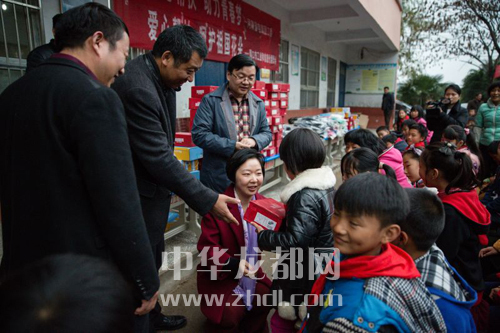 ????近日,省電商團工委、省電商協(xié)會一行人在市工信委工作人員的陪同下到商水縣舒莊鄉(xiāng)杜店小學捐贈了500套羽絨服和旅游鞋。圖為捐贈現(xiàn)場。晚報記者 王凱 攝