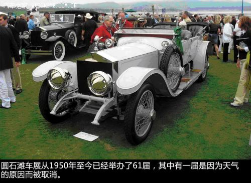 ??? 第二次的圓石灘車展是在1951年5月27日舉辦,當時只有23輛車參展。接下來幾十年中,除了1960年,因為天氣惡劣的原因取消車展;以及1963到1965年間長期大雨磅礴導(dǎo)致了參展草地損壞不可用,車展地點出現(xiàn)一些變動外,圓石灘車展一直舉辦的都非常順利,并且由于其參展車型都是價值連城的古董老爺車及未來的概念車,所以它還獲得了“全球最豪華的汽車展”稱號。