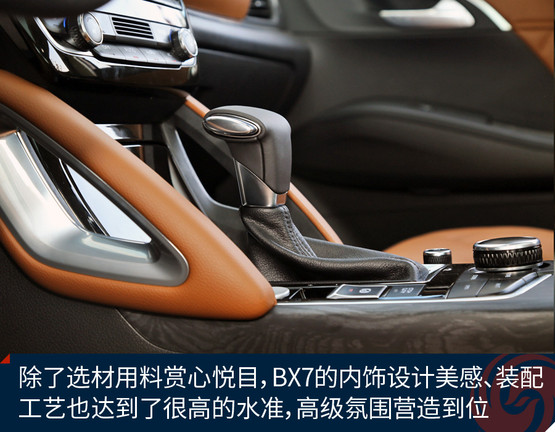 BX7的隔音材料總體夠足料,光在車門上就鋪設(shè)了兩個(gè)整圈+窗框上多半圈的密封隔音膠條,在這一價(jià)位的車型里絕對(duì)厚道。底盤的厚重感剛才提到了,高速行駛時(shí)無(wú)論風(fēng)噪還是輪胎噪音,抑或發(fā)動(dòng)機(jī)噪音都挺有節(jié)制的,稍微來(lái)點(diǎn)音樂就能掩蓋掉,因此這個(gè)車跑高速公路是讓人心情愉悅的,車內(nèi)安靜,而且非常平穩(wěn)。