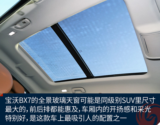 BX7是一款同時(shí)擁有5座、6座和7座布局的SUV車型,這款長(zhǎng)度超過4.7米的SUV的確有能力在行李廂布置第三排座椅。不過這次我們?cè)囻{的車型仍是五座配置,對(duì)于這樣尺寸級(jí)別的SUV前后排空間自然都不是問題,相當(dāng)寬闊而且乘坐感非常舒服。旗艦版的配置亦相當(dāng)豐富,三溫區(qū)自動(dòng)空調(diào)和前后排座椅加熱,以及同級(jí)別堪稱無(wú)敵的超大全景天窗,在配置方面很有吸引力,而再一次綜合其價(jià)格來(lái)看,明顯優(yōu)于同級(jí)別平均水平的標(biāo)準(zhǔn)配置再一次詮釋了“觸手可及的豪華”這一產(chǎn)品理念。