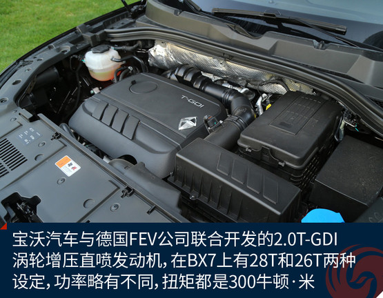 動(dòng)力方面寶沃BX7擁有一臺(tái)2.0T渦輪增壓直噴發(fā)動(dòng)機(jī),目前在售的均為高功率版本,擁有165千瓦的最大功率和300牛頓·米的峰值扭矩,這臺(tái)2.0T發(fā)動(dòng)機(jī)是寶沃聯(lián)合德國(guó)FEV公司共同研發(fā),最大功率數(shù)據(jù)可觀,但峰值扭矩因?yàn)樽兯倨髂艹惺茏畲笈ぞ氐南拗票辉O(shè)定得略微保守,可見這還并非這臺(tái)發(fā)動(dòng)機(jī)的全部潛力。令人欣慰的是,這臺(tái)2.0T發(fā)動(dòng)機(jī)峰值扭矩在1500rpm即可輸出,這個(gè)優(yōu)點(diǎn)讓它在低轉(zhuǎn)速區(qū)即可有充沛的牽引力,駕駛起來(lái)顯得更加輕松,超車的時(shí)候信心十足。