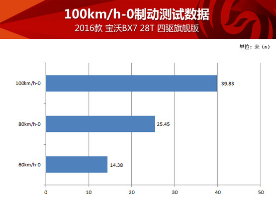 加速過后就要減速,寶沃BX7的制動(dòng)系統(tǒng)在測(cè)試中經(jīng)受住考驗(yàn),不到39米的成績(jī)對(duì)于一臺(tái)SUV而言已經(jīng)算是很不錯(cuò),而且多次測(cè)試并未出現(xiàn)制動(dòng)力有衰減的現(xiàn)象。