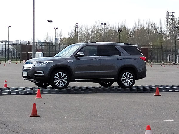 第三個(gè)項(xiàng)目是緊急避讓?zhuān)w驗(yàn)車(chē)輛抓地性;接下來(lái)的側(cè)面斜坡項(xiàng)目長(zhǎng)安CS95順利通過(guò),車(chē)身并未有異響。