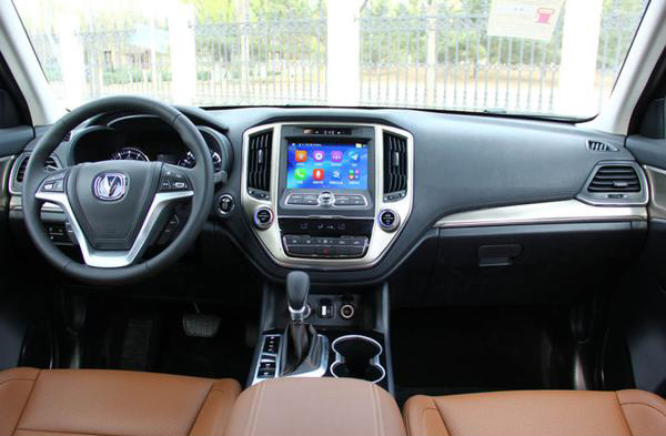 長(zhǎng)安CS95采用大尺寸顯示屏搭配實(shí)體按鍵,兩側(cè)豎向設(shè)置了空調(diào)出風(fēng)口,按鍵排布層次分明,但略顯繁雜。新車(chē)還配有三輻式多功能方向盤(pán),門(mén)板以及換擋桿處增加了木紋裝飾,同時(shí)提供5座和7座兩種選擇。