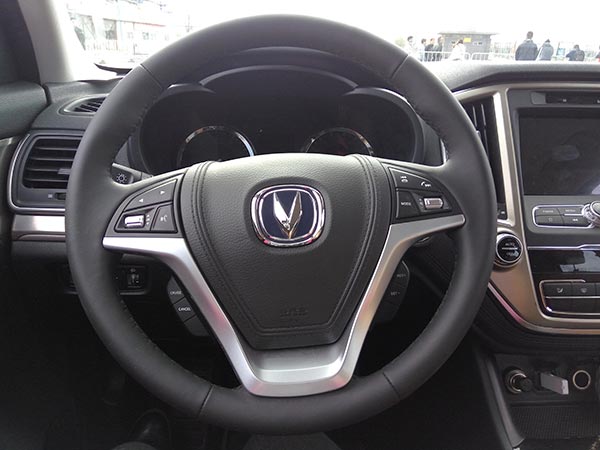 內(nèi)飾整體的造型設(shè)計(jì)凹凸有致,層次清晰。三幅式多功能方向盤(pán)尺寸大小合適,軟性材質(zhì)的包裹也讓車(chē)內(nèi)做工顯得比較細(xì)膩。