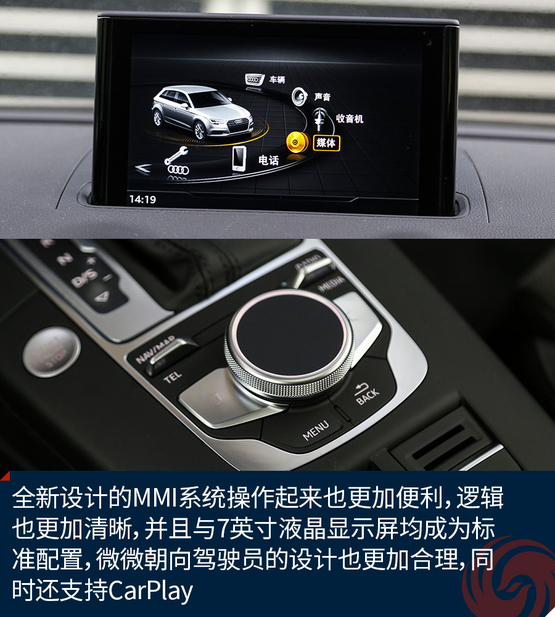 相比較外觀的改變,內(nèi)飾的變化就要少了一些,最直觀的變化莫過于全新設(shè)計(jì)的真皮方向盤,不僅好看也十分的好用,發(fā)光的迎賓踏板進(jìn)一步增加了車輛的高級(jí)感,中控面板上的鋁合金材質(zhì)的裝飾條質(zhì)感出色,不僅如此,還有多種樣式和材質(zhì)可選;而門板內(nèi)的Alcantara材質(zhì)進(jìn)一步提升了舒適的觸感,當(dāng)然座椅也同樣采用了Alcantara。另外新增加的USB接口也進(jìn)一步增加了行車的便利性,這也讓A3車內(nèi)的USB數(shù)量增加到兩個(gè)。同時(shí),全新設(shè)計(jì)的MMI系統(tǒng)操作起來也更加便利,邏輯也更加清晰,并且與7英寸液晶顯示屏均成為標(biāo)準(zhǔn)配置,微微朝向駕駛員的設(shè)計(jì)也更加合理,同時(shí)還支持CarPlay。