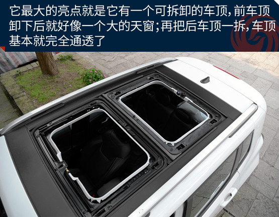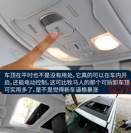 敞篷版車型將普通車型的天窗玻璃全部換成了可拆卸的頂棚,拆卸過程十分方便,即使是女性車主也能輕松拆卸。而且最重要的一點(diǎn)是這個(gè)頂棚不只是樣子貨,平時(shí)放在車頂時(shí),車內(nèi)可進(jìn)行操作,把它變成一個(gè)電動(dòng)天窗來用,是不是感覺特高端?