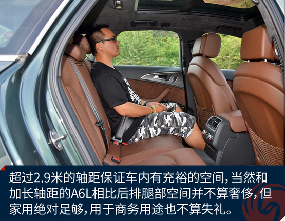????????作為中大型豪華車衍生的旅行轎車,A6 Avant提供了充足的乘坐空間,當然后排不會像加長軸距的A6L那么奢侈,不過作為商務(wù)接待并不嫌失禮。身高180cm的人在后排足夠舒適,加上旅行車車頂輪廓高挑,后排乘客頭部空間還優(yōu)于三廂轎車。