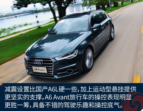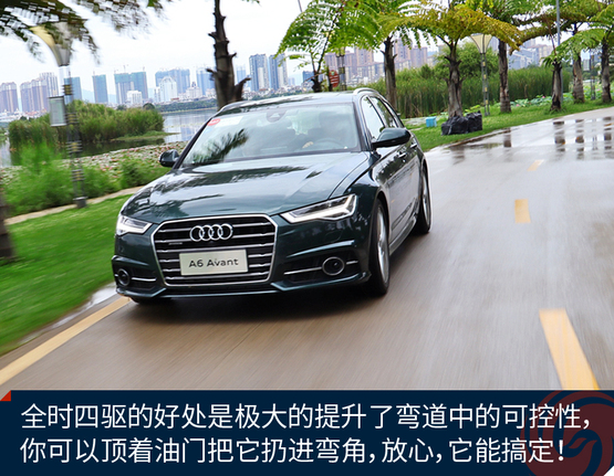 ????????作為原裝進口車,奧迪A6 Avant的底盤懸掛設(shè)定不像國產(chǎn)奧迪A6L那種偏向關(guān)照后排的VIP,再加上標配運動型懸掛縮減了懸掛行程,A6 Avant旅行車開起來明顯比A6L來的犀利和動感,我并不是說它像RS 6 Avant那樣有種讓人上癮而無法自拔的“毒力”,但作為一臺有著濃郁個人主義色彩又需要兼顧全家使用的車型,奧迪A6 Avant是那種該穩(wěn)就穩(wěn),要快也能快的理想設(shè)定。