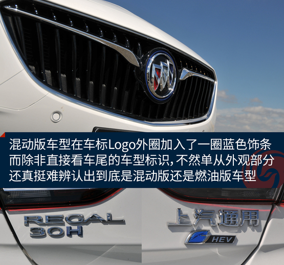 ????????仔細(xì)對(duì)比才會(huì)發(fā)現(xiàn),混動(dòng)版車(chē)型在車(chē)標(biāo)Logo外圈加入了一圈藍(lán)色飾條,而除非直接看車(chē)尾的車(chē)型標(biāo)識(shí),不然單從外觀部分還真挺難辨認(rèn)出到底是混動(dòng)版還是燃油版車(chē)型。