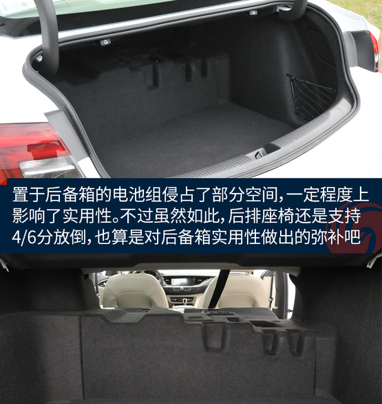 ????????置于后備箱的電池組侵占了部分空間,空間表現(xiàn)由燃油車(chē)型的434升縮至328升,在一定程度上影響了實(shí)用性。不過(guò)雖然如此,后排座椅還是支持4/6分放倒,這也算是對(duì)后備箱實(shí)用性做出的彌補(bǔ)吧。