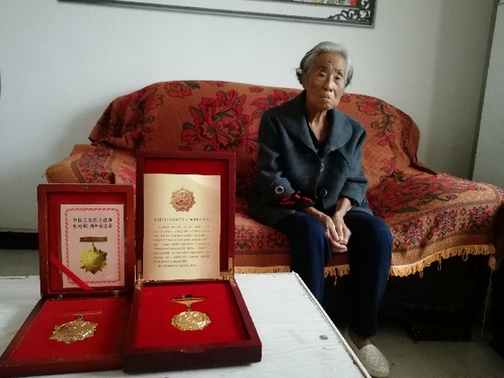 袁義英,1930年10月出生在山東省濱州市鄒平縣,現(xiàn)居住在西華縣紅花集鎮(zhèn)龍池頭村。1938年隨父親來到部隊,父親犧牲后她被組織安排在后方醫(yī)院當護士,1950年隨丈夫落戶在西華縣龍池頭村。