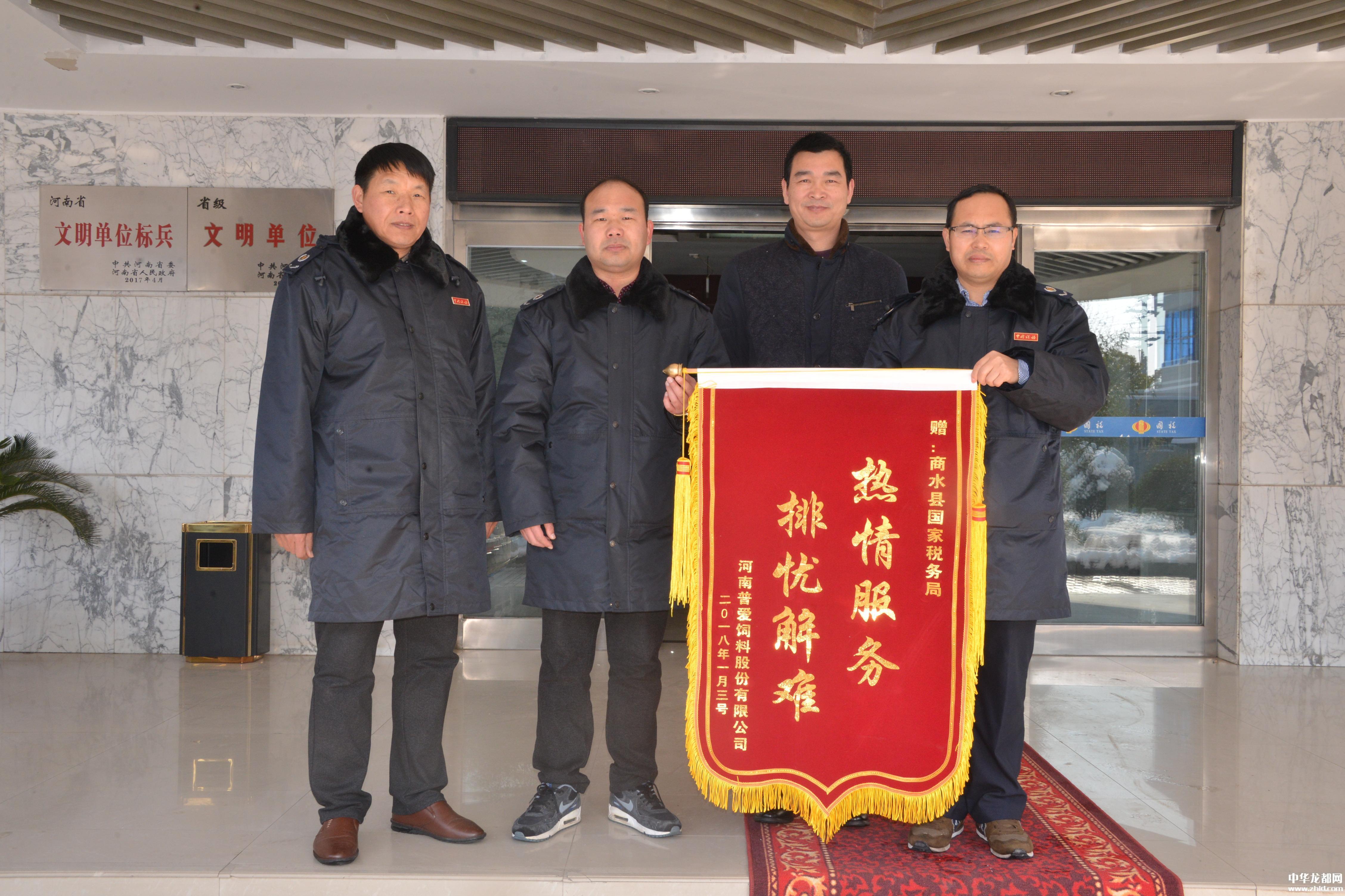 中華龍都網(wǎng)訊(周口報(bào)業(yè)全媒體記者 付永奇 通訊員 李媛媛)1月8日,河南普愛飼料股份有限公司的財(cái)務(wù)人員將一面印有“熱情服務(wù)排憂解難”的錦旗送到商水縣國(guó)稅局,感謝辦稅服務(wù)廳工作人員急納稅人之所急、想納稅人之所想,為他們提供細(xì)致、周到、高效的辦稅服務(wù)。