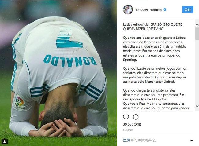 本賽季的C羅,狀態(tài)跌至谷底,門前缺乏進(jìn)球,越來(lái)越多的球迷開(kāi)始批評(píng)C羅。C羅的姐姐卡蒂婭-阿韋羅在社交媒體上力挺C羅,她寫了一大段話鼓勵(lì)C羅。