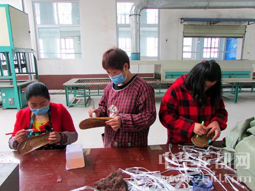 卞路口鄉(xiāng)高山店村的一家鞋廠,留守婦女正在加工鞋底。該縣在扶貧攻堅(jiān)中,通過實(shí)施資金幫扶、技術(shù)培訓(xùn)等措施幫助貧困群眾、返鄉(xiāng)農(nóng)民工創(chuàng)辦玩具廠、制鞋廠等微型企業(yè),為周邊群眾提供了就業(yè)崗位。