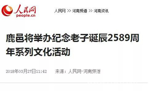 中華龍都網(wǎng)訊(周口報業(yè)全媒體記者 李瑞才 文/圖)再過幾天(本周六),就是老子誕辰2589周年了。為進一步推動老子文化與縣域建設(shè)深度融合,把老子文化這張牌打響擦亮,2016年年初鹿邑縣恢復(fù)舉辦了“老子生日拜典暨河南省非物質(zhì)文化遺產(chǎn)展演系列活動”這一文化盛事,使得老子故里的文化感染力和影響力不斷增強。今年3月31日至4月30日(農(nóng)歷二月十五日至三月十五日),鹿邑將繼續(xù)在縣城和太清宮景區(qū)舉辦2018年老子文化系列活動。連日來,新華社、人民網(wǎng)、光明網(wǎng)等中央主流媒體再次聚焦鹿邑,紛紛為老子故里這一文化旅游產(chǎn)業(yè)發(fā)展盛事宣傳造勢……