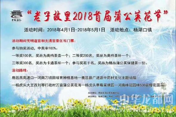 老子故里2018首屆蒲公英花節(jié)將于4月1日正式拉開序幕。此次活動將持續(xù)到5月1日,賞花期長達(dá)一個月。(周口報(bào)業(yè)全媒體記者 李瑞才 通訊員 郭紅民 攝)