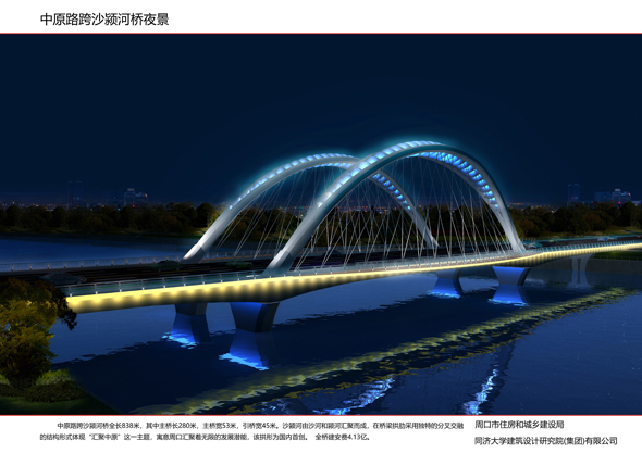 這次集中開工的14座橋梁,包含中原路跨沙潁河橋新建工程,流沙河大成路橋、洼沖溝政通路橋、洼沖溝人和路橋、流沙河騰飛路橋新建工程,以及9座老橋梁景觀改造工程,均位于城市主次干道的重要節(jié)點(diǎn),總投資5.6億元。其中,新建的中原路跨沙潁河大橋是其中最大的工程,橋長837米,橋?qū)?5米,建安費(fèi)投資估算4.2億元,建成后,沙潁河南北通行更加順暢。