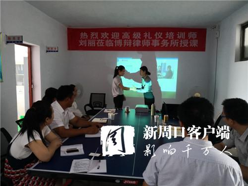 日前,在鹿邑縣,河南省禮儀高級講師劉麗應(yīng)邀為河南博辯律師事務(wù)所全體人員進行了一次形象與禮儀培訓(xùn),以提升律師們的職業(yè)形象和氣質(zhì),收到了良好效果。博辯律師事務(wù)所負(fù)責(zé)人白杰說,律師形象和禮儀是律師職業(yè)道德的重要組成部分,律師職業(yè)形象不僅體現(xiàn)于內(nèi)在專業(yè)水平和職業(yè)素養(yǎng),外在形象也是重要因素。優(yōu)秀的律師形象可以給客戶傳遞信任和依賴,從而能更好地履職盡責(zé),維護法律公正。因此,對律師特別是基層律師進行形象和禮儀培訓(xùn)是非常及時和有必要的。(通訊員 荊寧)