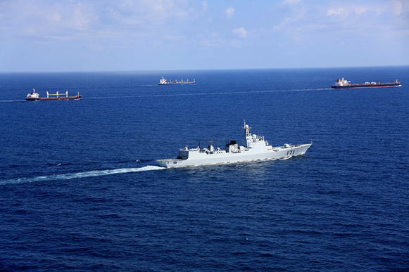 從戰(zhàn)艦起航的那一刻起,所有關(guān)于丈夫的消息都隨著母港內(nèi)尾流的消散,消失在無(wú)盡的大洋里。也從這一天起,我每天晚上7點(diǎn),都會(huì)準(zhǔn)時(shí)坐在電視機(jī)前,收看《新聞聯(lián)播》和《軍事報(bào)道》,期盼著首批護(hù)航的消息。直到現(xiàn)在,我依然清晰的記得這124天里與首批護(hù)航編隊(duì)相關(guān)的消息。