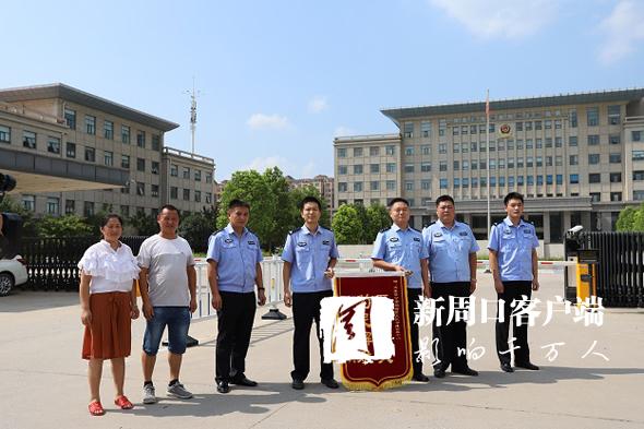“太康警察真神了!我還沒(méi)有發(fā)現(xiàn)超市東西被偷,警察就通知我領(lǐng)東西哩!”昨日,失主鄭先生和家人把感謝錦旗送到太康刑警手中。