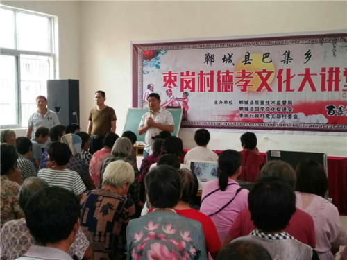 8月17日至19日,鄲城縣巴集鄉(xiāng)棗崗文化活動(dòng)中心舉行了為期三天的徳孝文化大講堂,本次活動(dòng)由縣質(zhì)監(jiān)局、縣國(guó)學(xué)會(huì)、棗崗行政村黨支部村委會(huì)主辦。旨在進(jìn)一步樹立社會(huì)新風(fēng),建立良好的家風(fēng)家規(guī),深入弘揚(yáng)和傳承中華徳孝傳統(tǒng)文化,積極培育和踐行社會(huì)主義核心價(jià)值觀,提高公民素質(zhì)和社會(huì)文明程度,形成“以德修身、以身孝親”的良好風(fēng)尚。