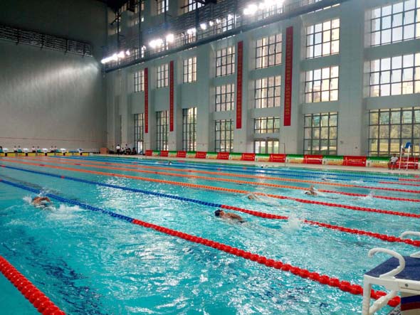 據(jù)了解,市游泳館占地面積4.4萬(wàn)平方米,總建筑面積24398.69平方米,地上建筑面積20846.08平方米,地下建筑面積3552.61平方米,地上三層、地下一層,可容納觀眾1200人。市游泳館內(nèi)共有兩個(gè)大的泳池,一個(gè)比賽用,長(zhǎng)50米、寬25米,規(guī)格達(dá)到奧運(yùn)會(huì)游泳比賽泳池標(biāo)準(zhǔn),比賽時(shí)水深將達(dá)到2米;另外一個(gè)練習(xí)用,供參賽選手熱身,水深1.2米。
