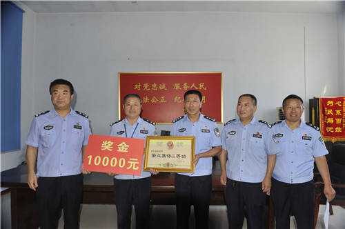 殷殷勉勵鼓士氣,濃濃關(guān)愛暖警心。8月22日,鹿邑縣公安局政委任金瑞帶領(lǐng)政工部門負責(zé)人深入基層一線,為榮立集體三等功的鹿邑縣拘留所和榮獲個人嘉獎的任集派出所指導(dǎo)員姚坤送去獎?wù)?、證書和獎金。