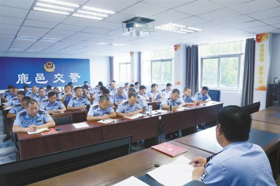 本報(bào)訊 9月18日上午,鹿邑縣交警大隊(duì)以“九一八事變國(guó)恥紀(jì)念日”為主題,為大隊(duì)全體黨員講了一堂黨課(如圖)。
