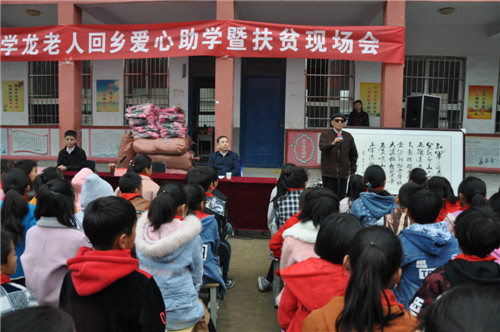 看到這一幕,黃寨鎮(zhèn)黨委書(shū)記朱宏偉動(dòng)情地說(shuō):“讓我們?nèi)珗?chǎng)起立,用熱烈的掌聲向于學(xué)龍老人表示崇高的敬意!于老千里迢迢回到故鄉(xiāng),用一份飽含愛(ài)心的余熱,給我們帶來(lái)了溫暖,他是最可敬的人,也是最可愛(ài)的人。希望埠口小學(xué)全體師生學(xué)習(xí)于老的這種高尚情懷,辦好學(xué)校、育好人才,培養(yǎng)好一個(gè)個(gè)家庭的希望,助力脫貧攻堅(jiān)!”