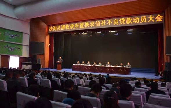 11月21日,扶溝縣召開政府置換農(nóng)信社不良貸款清收工作動員會。會議貫徹落實省、市有關部署,動員全縣上下統(tǒng)一思想,提高認識,細化措施,夯實責任,推動政府置換農(nóng)信社不良貸款清收工作深入開展、取得實效。張穎波、張峰、王偉、常青、王霄靈、陳建華、李建設等縣領導出席會議??h委副書記、政法委書記張峰主持會議。