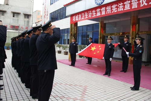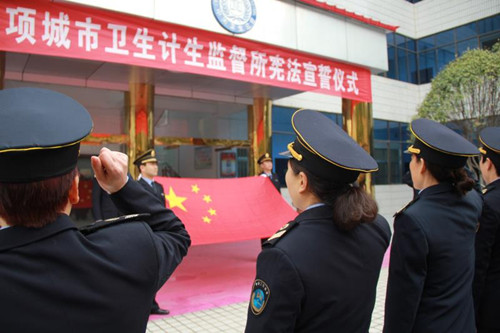 12月4日在我國(guó)第五個(gè)國(guó)家憲法日來(lái)臨之際,項(xiàng)城市衛(wèi)生計(jì)生監(jiān)督所舉行憲法宣誓儀式,旨在引導(dǎo)全體衛(wèi)生計(jì)生監(jiān)督人員牢固樹立憲法至上意識(shí),增強(qiáng)憲法觀念,自覺維護(hù)憲法尊嚴(yán)。