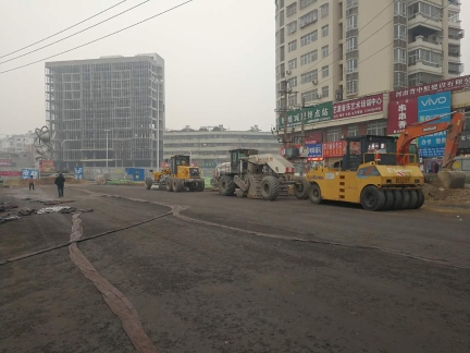 記者今日走訪漢陽路中段(穎河路-建設路)看到,目前該路段機動車道已鋪上黑色的混凝土物質(zhì),人行道則是壓實過的土路。壓路機等設備??吭诘缆穬深^,并未啟動,有兩臺挖掘機及數(shù)十名工人在人行道上,鋪設下水道。施工路段內(nèi),有不少菜販在沿街叫賣。