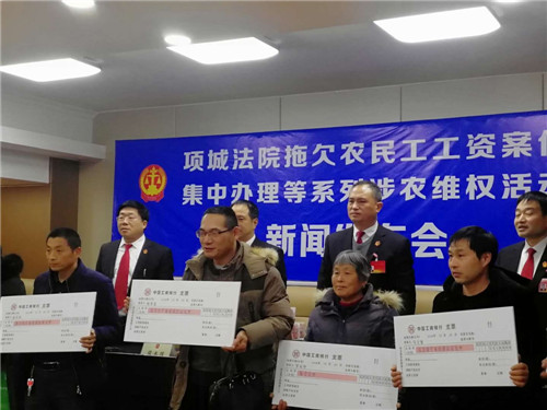 “感謝項城法院的領(lǐng)導(dǎo),他們一心為民,克服種種困難,幫助我們要回了血汗錢?!?2月24日,項城法院拖欠農(nóng)民工工資案件集中辦理等系列涉農(nóng)維權(quán)活動新聞發(fā)布會在該院召開,16名涉農(nóng)維權(quán)案件當(dāng)事人從項城法院黨組成員、院長張永波的手中接過索要許久的血汗錢,喜極而泣。