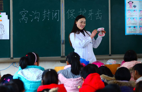 為加強(qiáng)口腔疾病健康教育和健康促進(jìn)工作,提高兒童口腔疾病防治知識(shí)知曉率,近日,鄲城縣疾控中心組織口腔專業(yè)技術(shù)人員,到第三實(shí)驗(yàn)小學(xué)開展“鄲城縣健康口腔助成長(zhǎng)口腔健康教育活動(dòng)”和“鄲城縣兒童口腔疾病綜合干預(yù)項(xiàng)目進(jìn)校園活動(dòng)”。在活動(dòng)現(xiàn)場(chǎng),口腔醫(yī)師為二年級(jí)學(xué)生上了三場(chǎng)生動(dòng)的口腔健康教育課,詳細(xì)講解口腔疾病防治知識(shí)。