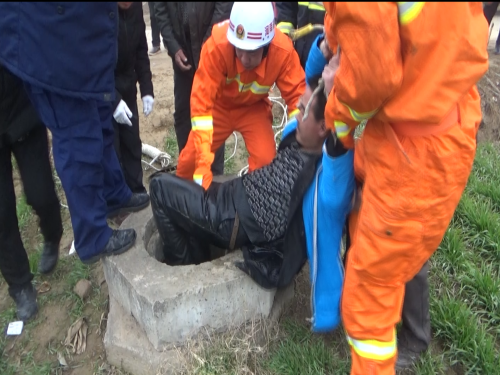 1月14日早上8時(shí)許,接到群眾報(bào)警后,淮陽縣消防大隊(duì)立即出動(dòng)一輛搶險(xiǎn)救援車、一輛水罐車及8名指戰(zhàn)員趕赴救援。到達(dá)現(xiàn)場后,民警發(fā)現(xiàn)男子掉進(jìn)一個(gè)沒有蓋的澆灌井內(nèi),井深約10米,井口直徑大約20公分。