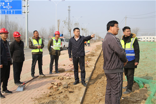 3月10日上午,周口港區(qū)黨委書記孫紅偉到轄區(qū)檢查環(huán)保措施落實(shí)情況和綠化工程施工進(jìn)度,港區(qū)黨委委員杜廣賢、張東立陪同。