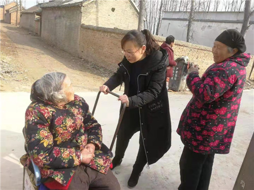 鏗鏘扶貧路,拳拳民生情。林娜加班加點,扎實的作風不僅有效推動了幫扶工作的順利推進,而且也換來了當?shù)卮迕竦摹包c贊”。為推進老人戶合吃合住問題,林娜三番五次去做工作,段屯行政村于樓村86歲的老人王全英,年邁不能自理,遭兒子嫌棄,3個兒子都不愿贍養(yǎng)老人。一次,陰雨天,老人不慎跌倒,摔傷胳膊,兒女們都不管不顧,林娜在走訪的過程中了解情況后,立即幫老人買來膏藥貼上,同時開始做兒女的思想工作,“家有一老似有一寶,孝親愛老是中華民族的傳統(tǒng)美德”,經(jīng)過林娜再三做思想工作,三個兒子茅塞頓開,愿意贍養(yǎng)老人,最終老人在三個兒子家輪流吃住。在林娜及隊員的共同努力下,段屯行政村不僅老人戶全部合戶,而且在全村掀起了爭做賢孫孝媳的局面。一名老黨員袁士成,每次見了工作隊都豎起大拇指說:“兒女好,兒女好,兒女再好不如共產(chǎn)黨對俺好”。