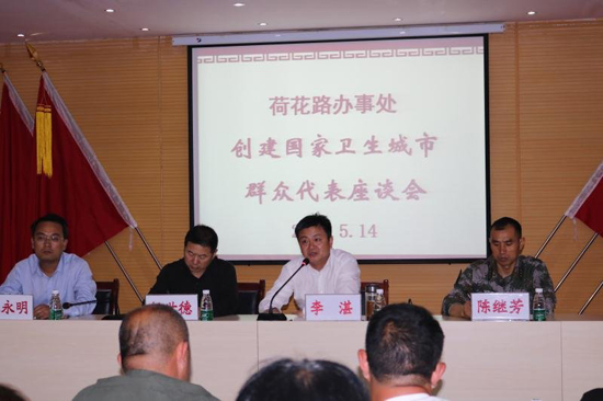 5月14日晚8時(shí),區(qū)長(zhǎng)李湛主持召開荷花路辦事處創(chuàng)建國(guó)家衛(wèi)生城市群眾代表座談會(huì)。區(qū)人大黨組成員任世德、區(qū)檢察院檢察長(zhǎng)郭煜、區(qū)武裝部長(zhǎng)陳繼芳出席。荷花辦科級(jí)干部、社區(qū)書記、轄區(qū)黨員和群眾代表100多人參加。