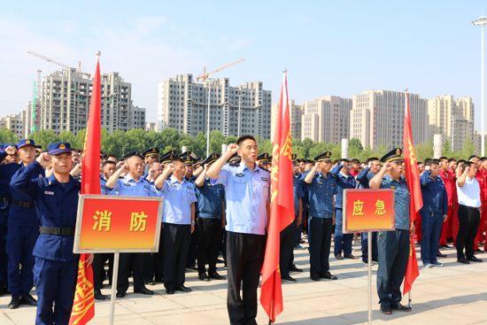 5月30日上午,鹿邑縣在縣文化中心廣場舉行應(yīng)急救援隊授旗宣誓儀式,縣委常委、常務(wù)副縣長陸志杰現(xiàn)場為全縣新整合的15支專、兼職應(yīng)急救援隊伍授旗,各應(yīng)急救援隊伍在推選代表的帶領(lǐng)下,共同舉起右手進(jìn)行了莊嚴(yán)的宣誓儀式。