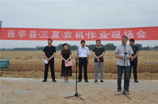 “麥浪滾滾閃金光,秣馬厲兵迎三夏”。值此三夏大忙到來之際,6月1日上午,西華縣農(nóng)機局在東王營鄉(xiāng)東王營村舉辦三夏農(nóng)機作業(yè)現(xiàn)場會,周口市農(nóng)機局黨組書記、局長劉偉,西華縣委副書記、政法委書記程維崢,縣政府副縣長毛茹,東王營鄉(xiāng)黨委、政府主要負責(zé)同志,各鄉(xiāng)鎮(zhèn)、辦事處分管農(nóng)業(yè)農(nóng)村工作副職,東王營鄉(xiāng)部分村支部書記,縣農(nóng)機局全體干部職工和部分農(nóng)機合作社理事長等共80余人參加了演示會。